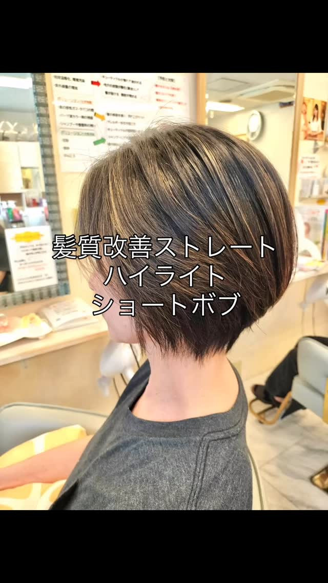 【篠崎】ストレートしながらも自然なボブ🌱 【篠崎】ストレートしながらも自然なボブ🌱髪質改善ストレートで縮毛矯正とは違う自然なストレートを実現!黒髪には動きを出すため細いハイライトを沢山入れています🍀*゜ポリューションケアも気に入ってい…